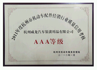 2011年度杭州市机动车配件经销行业质量信用考核 AAA企业