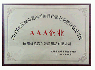 2012年度杭州市机动车配件经销行业质量信用考核 AAA企业